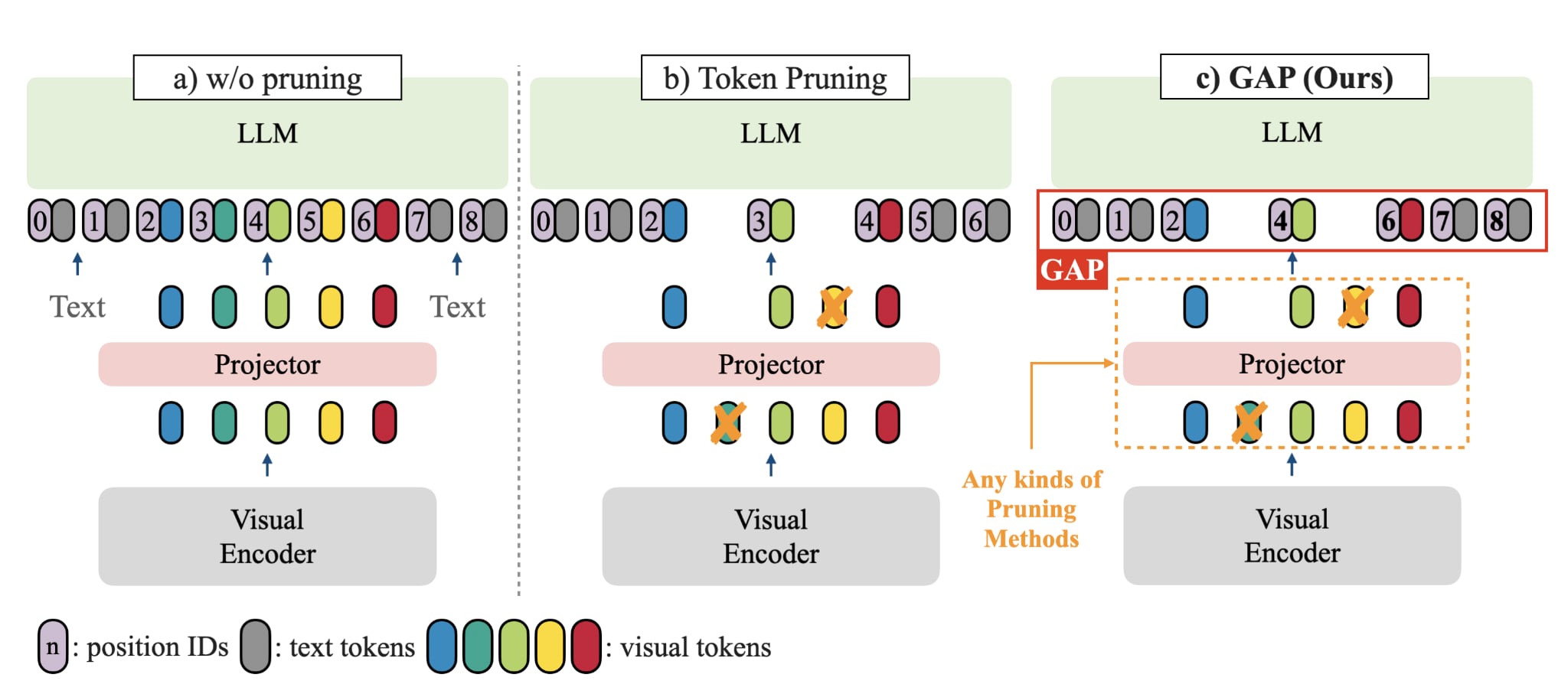 Discovered that token pruning causes catastrophic performance drops in visual grounding due to misaligned position IDs. Our simple solution, GAP, recovers 90% of original grounding performance without additional training or computational overhead.